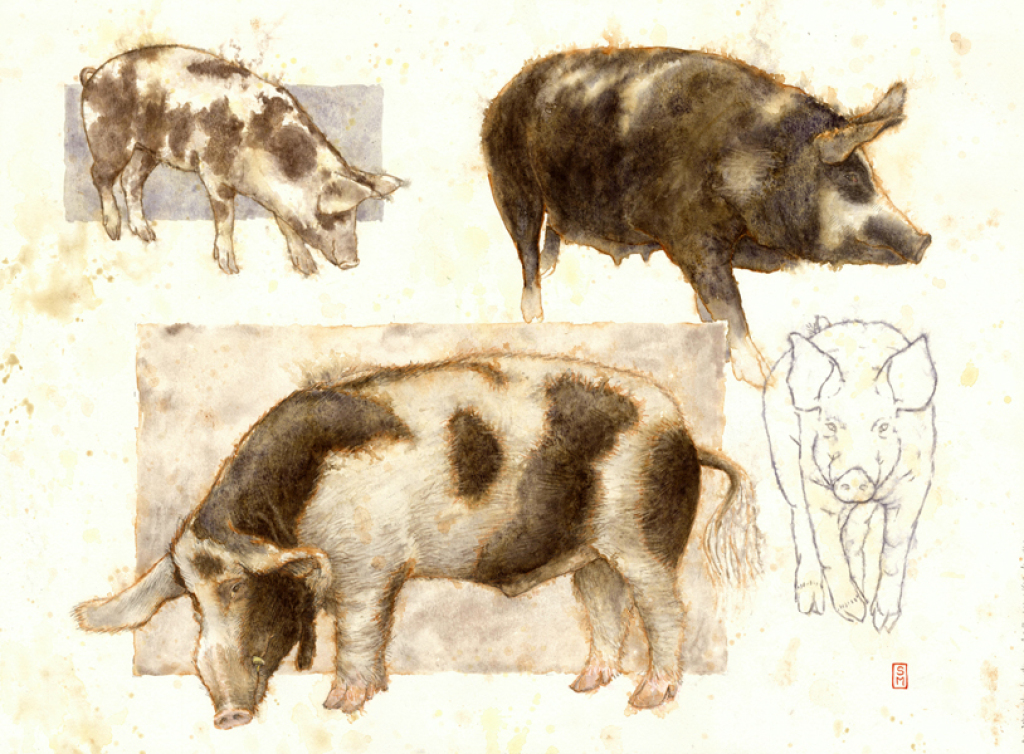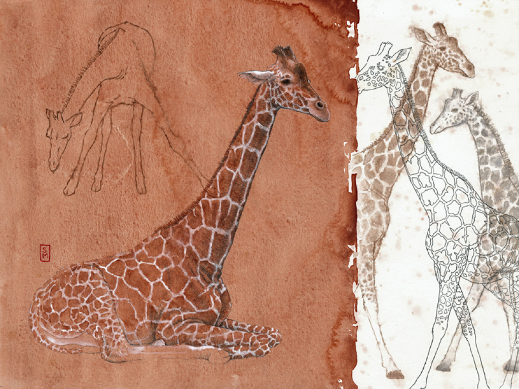 My starting point is to draw from close observation. I really like drawing and painting in nature and in zoos. Afterwards I continue to work in my studio using these experiences.