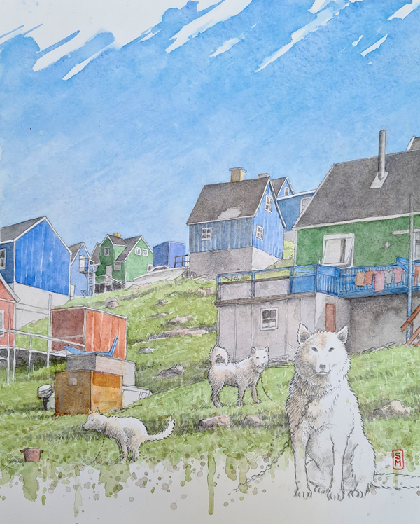 Fordybelse - som en slags meditation - med blyant, og akvarelfarve - fokus på lys og skygge - åbne sanser - og god tid. En fantastisk måde at opleve Grønland på.